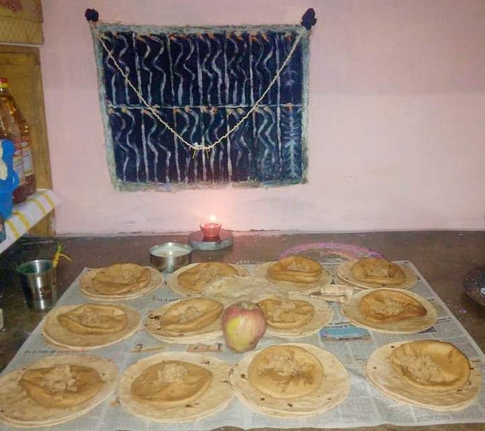 Dalassi is poured over them during Puja and kheer, meri, gugni and churi is offered as prasad.